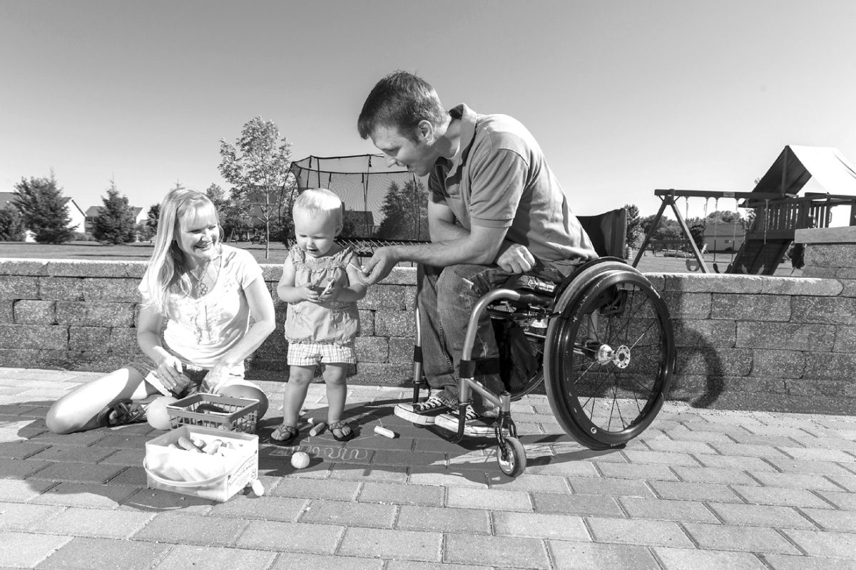 Brenda and Chuck Isaacson play in their back yard with their 16-month old daughter, in Sun Prairie, Wis. (AP Photo/Andy Manis)