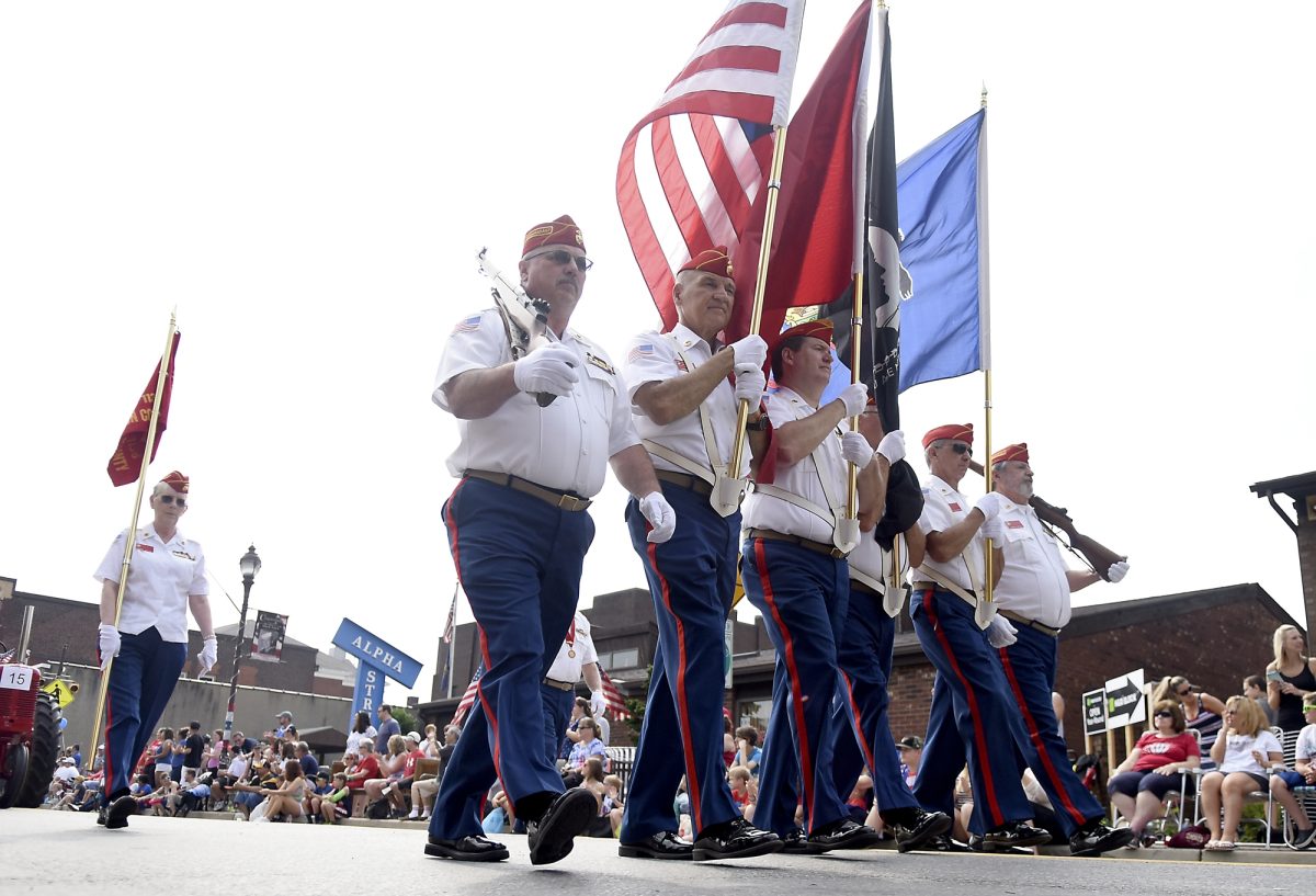 On light posts and telephone poles throughout town, banners of local veterans who served in combat, and 150 new American flags donated by Weavertown Environmental and Slovenian Savings & Loan Association were on display.