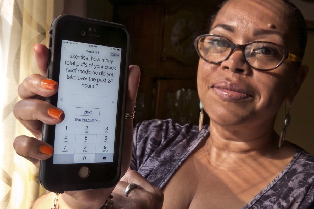 Some apps rely on participants to provide data. Elizabeth Ortiz, a 48-year-old New York nurse with asthma, measures her lung power each day by breathing into an inexpensive plastic device. She types the results into the Asthma Health app, which also asks if she’s had difficulty breathing or sleeping, or taken medication that day.