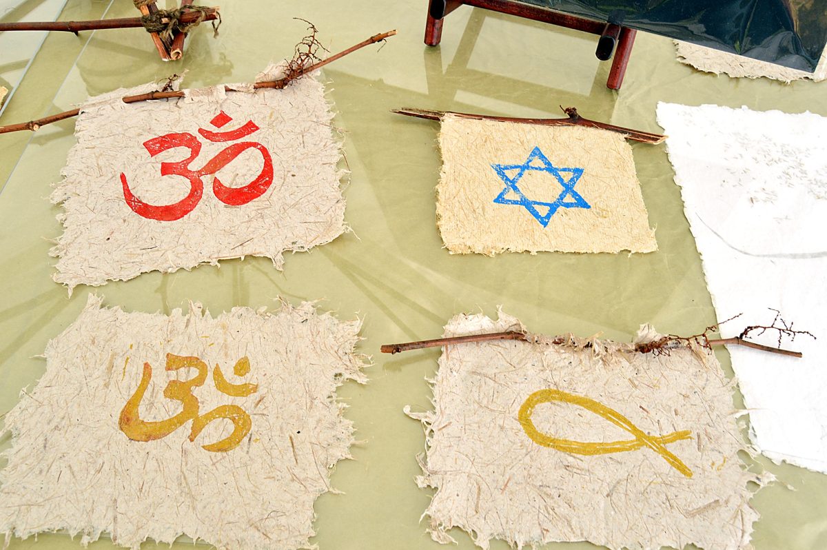 David Singer/The Almanac A “Knot Just Weeds” display of paper made from Japanese knotweed was featured during Art in Action, an annual interactive art show that was held at Washington Park Sunday. Albert Patone, of Pittsburgh, cooks the weeds with soap powder, places them in a blender with water, then soaks the mixture in a basin of water to form the papery substance.