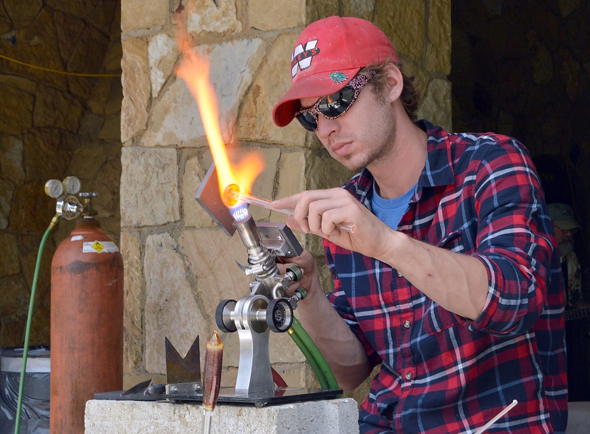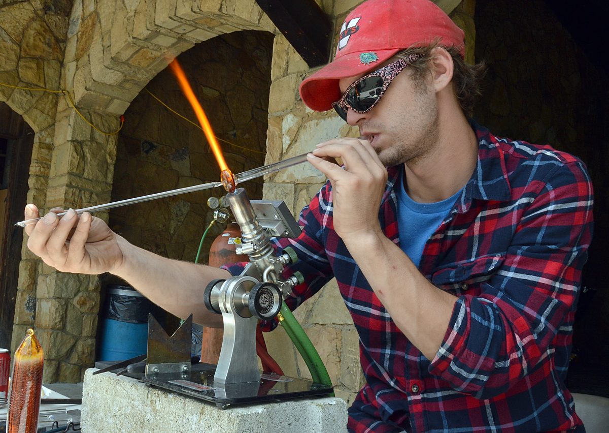 David Singer/The Almanac Addison Abbas, 27, of Washington, displayed his glass work during the Art in Action event at Washington Park Sunday. Several artists showcased their work, which included photography and homemade paper. The event also included sand art, marble art and a balloon-making display for children.