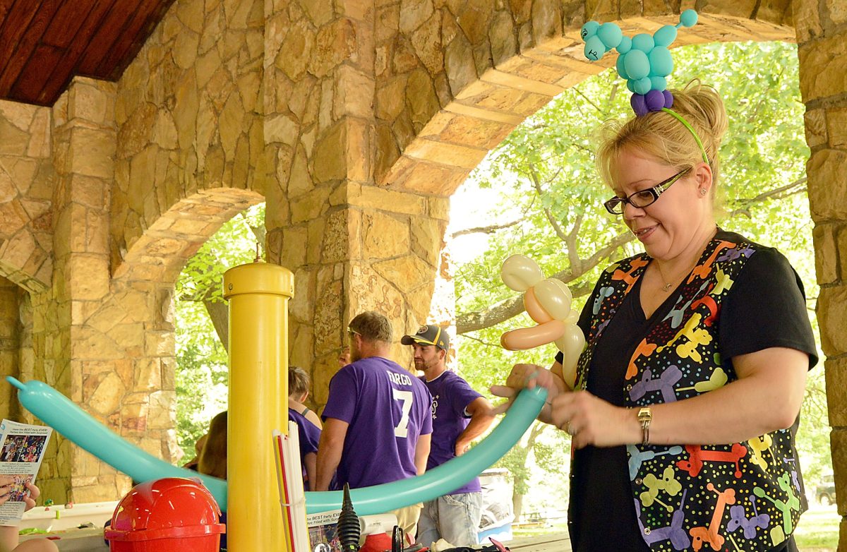 David Singer/The Almanac Rebecca Kanar, a balloon artist, had a display during the Art in Action event at Washington Park Sunday.