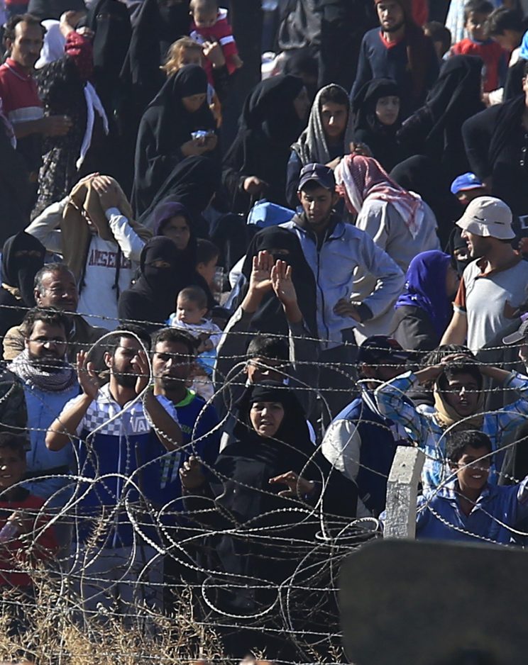 AKCAKALE, Turkey – Thousands of Syrians cut through a border fence and crossed over into Turkey on Sunday, fleeing intense fighting in northern Syria between Kurdish fighters and jihadis.