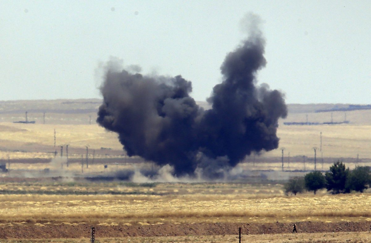 U.S. airstrikes continued Sunday in the area, as an Associated Press journalist on the Turkish side of the border from Tal Abyad saw one strike east of the town.