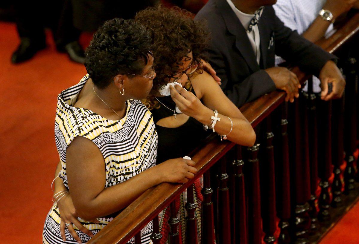 As Emanuel’s congregation belted out a gospel hymn, church bells rang throughout the “Holy City” – nicknamed because of the numerous churches here. Later Sunday, people were expected to gather on the Arthur Ravenel Bridge to join hands in solidarity.
