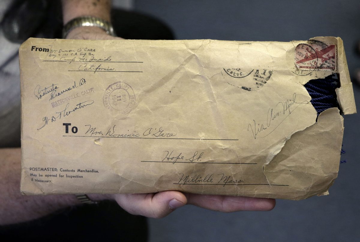 The sham, emblazoned with the word “Mother” and sent in 1942 by Dominic O’Gara from his U.S. Army base in California to his mother in the small Massachusetts town of Millville, was discovered last month by a town native on eBay.