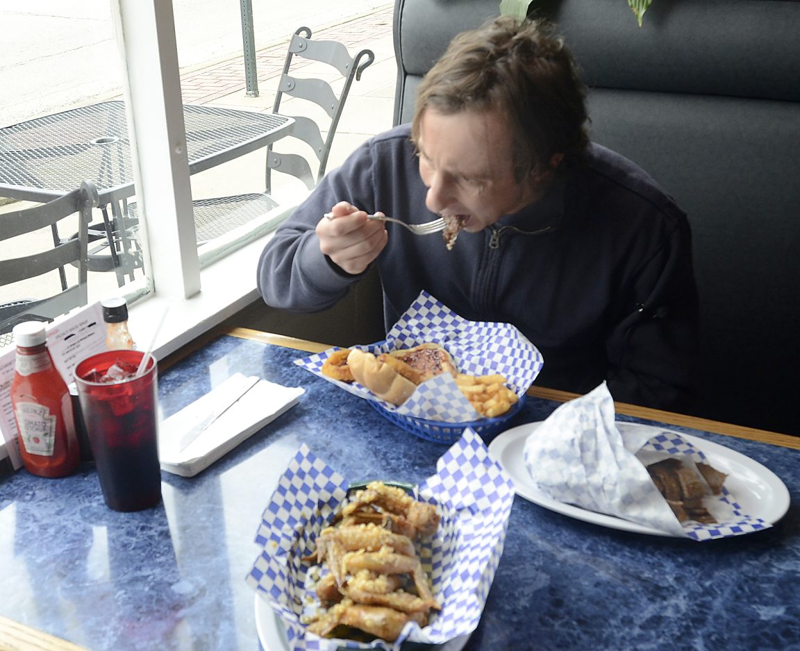 As difficult as it was, no meals or snacks were consumed from 6 p.m. the evening before the challenge until the 2:45 p.m. start time. Water went down in excessive amounts prior to sitting in a corner booth overlooking West Maiden Street. A vigorous run took place about three hours before arriving, and a strategy was detailed.