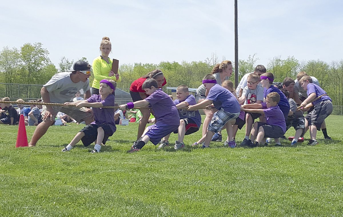 More than 250 students participated in a variety of events, including the tug of war, during the day of outdoor games at the high school field.