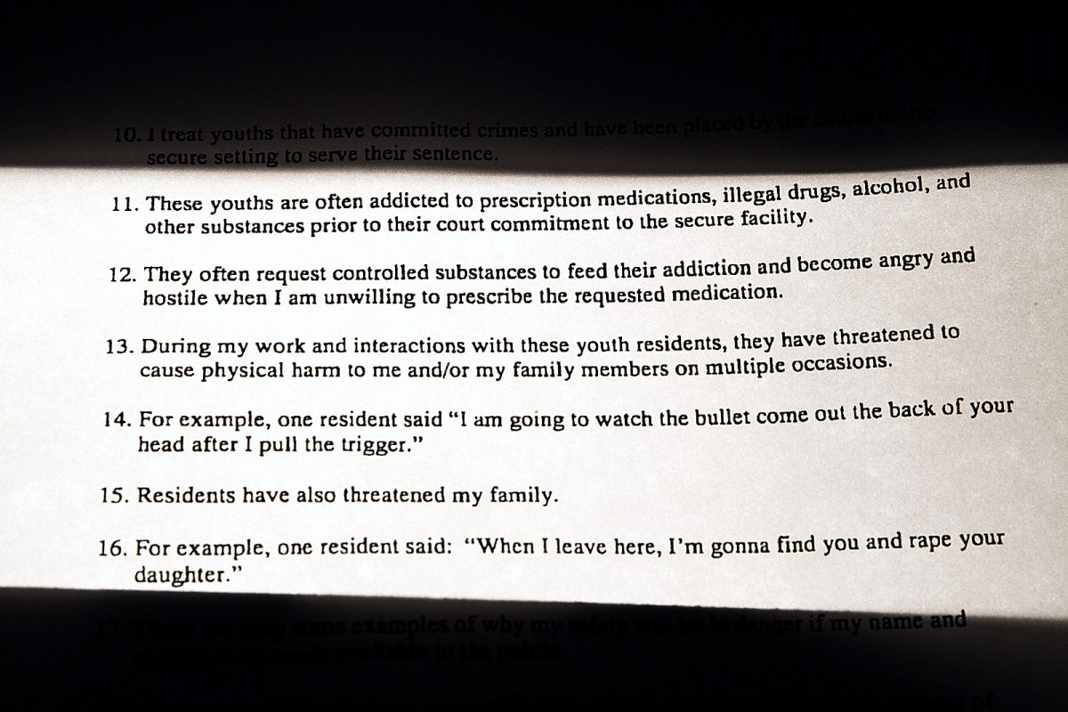 One physician who had worked in one of the facilities for three years at the time said he fears his name being released to the media would lead to the troubled teens, their family members and gang associates to learn his full name and home and office address.