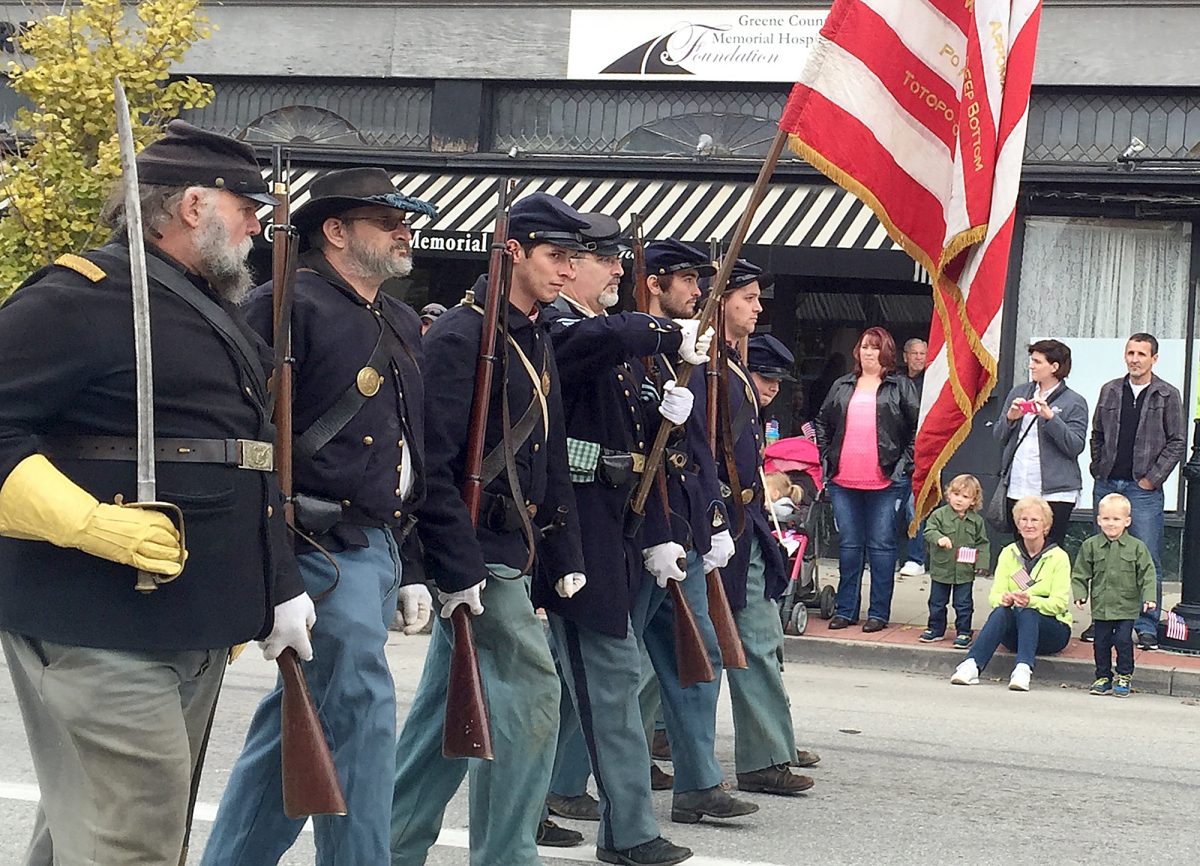 The 140th Pennsylvania Infantry Company A re-enactment group marched in the Veterans Day parade in Waynesburg Saturday.