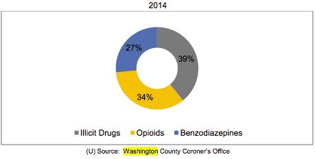 The data from 2014 shows Washington and Greene counties had heroin as the highest killer, with Greene County also including Oxycodone. Of the nearly 2,500 deaths across the state in 2014, Washington had 37 and Greene had 9; nearby Allegheny County had 307 overdose deaths.