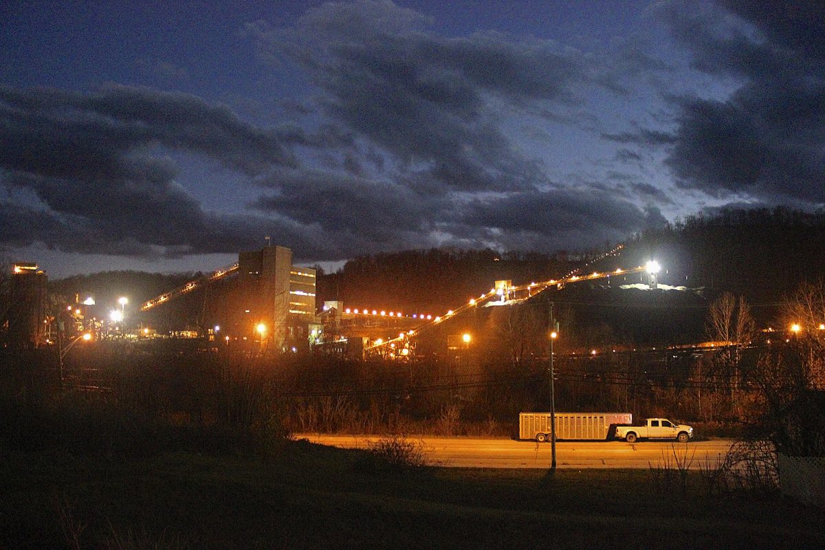 At night, too, the sounds of locomotives, belt lines, ventilation fans and dozer back-up alarms, barely audible during the day, echo throughout Waynesburg.