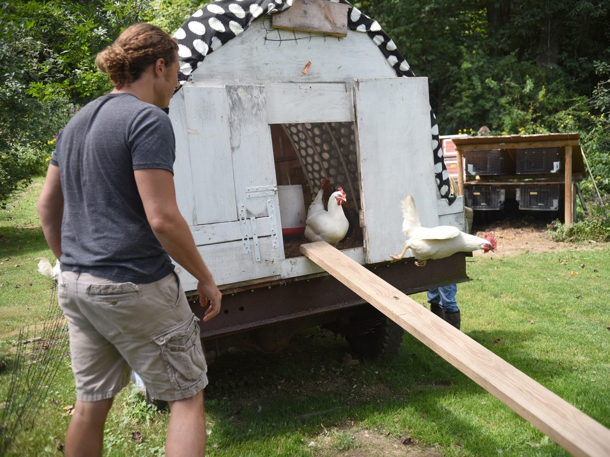 But all is not always well at Tabard Farm. Sometimes the chickens, which roam free after they meet Von Scio’s “three egg ransom rule” to prevent a daily egg hunt in the yard, are roosting in hostile territory.