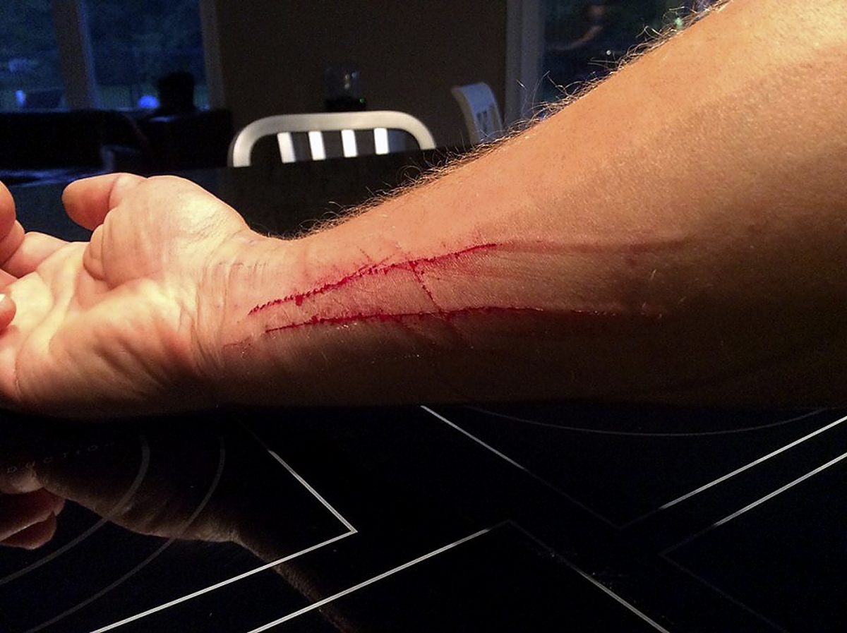 ”Two-hundred pound pigs and turkeys with spurs, but I’ve shed more blood over these little guys than anything else. They just ‘spaz’ out sometimes, and each claw is like a razor blade,” he said, showing off fresh, bloody scratches.