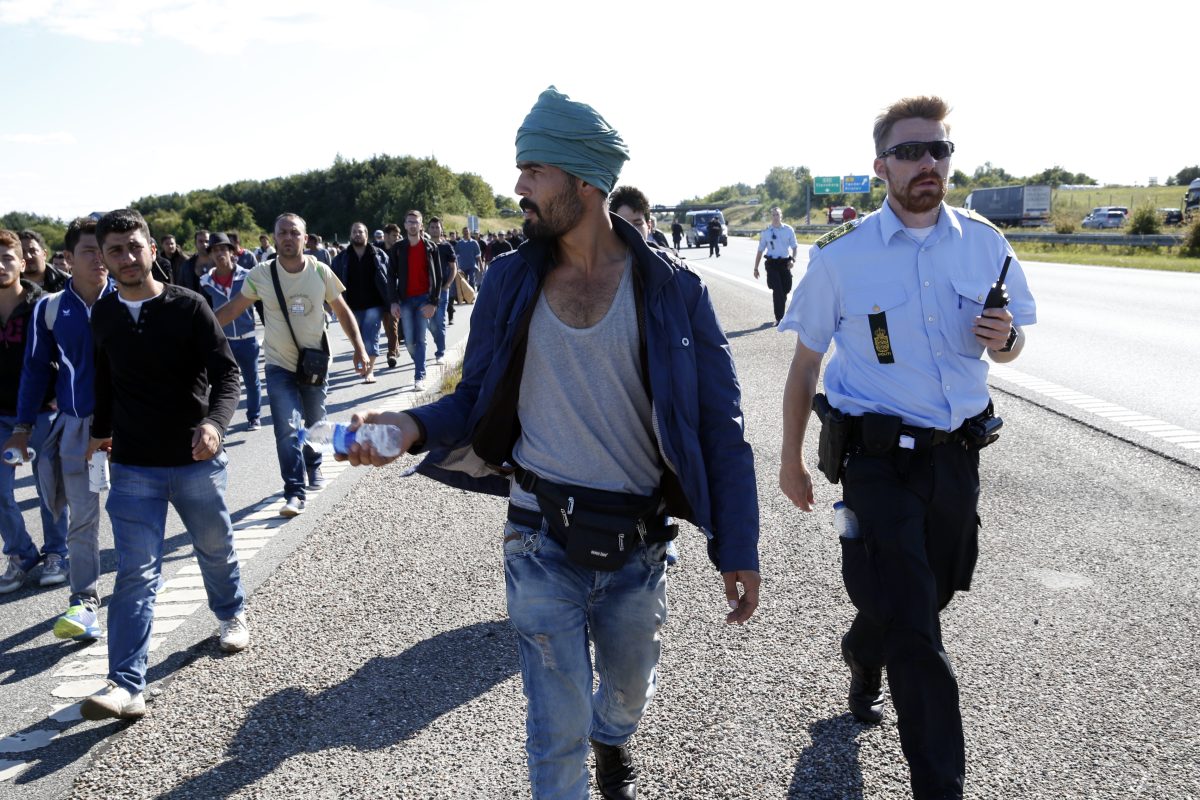 Danish police also closed a highway on the Jutland peninsula after about 300 migrants who had crossed the border from Germany left a school where they had been housed and started heading north on foot.