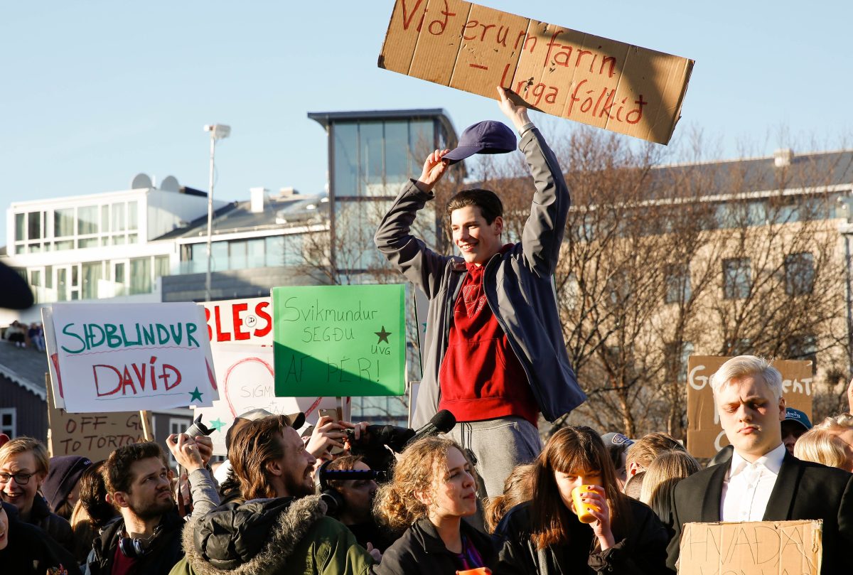 An estimated 8,000 angry protesters gathered outside in Reykjavik, demanding he step down and call new elections.