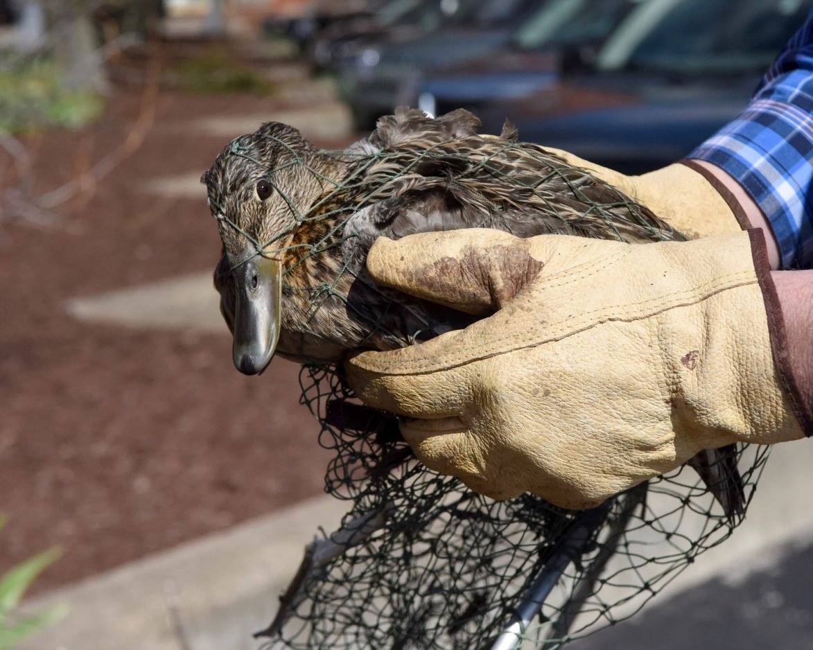 The concern, Joyce said, was the mallard’s ducklings would fall through sewer grates and get picked off by predators on their way to a body of water after hatching.