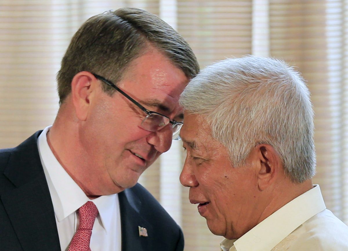 Last week the Pentagon announced that the U.S. will give the Philippines about $40 million in military assistance to bolster intelligence-sharing, surveillance and naval patrols. Carter said the aid will include an enhanced information network for classified communications, sensors for patrol vessels and an unmanned aerostat reconnaissance airship to help the Philippines keep watch over its territory.
