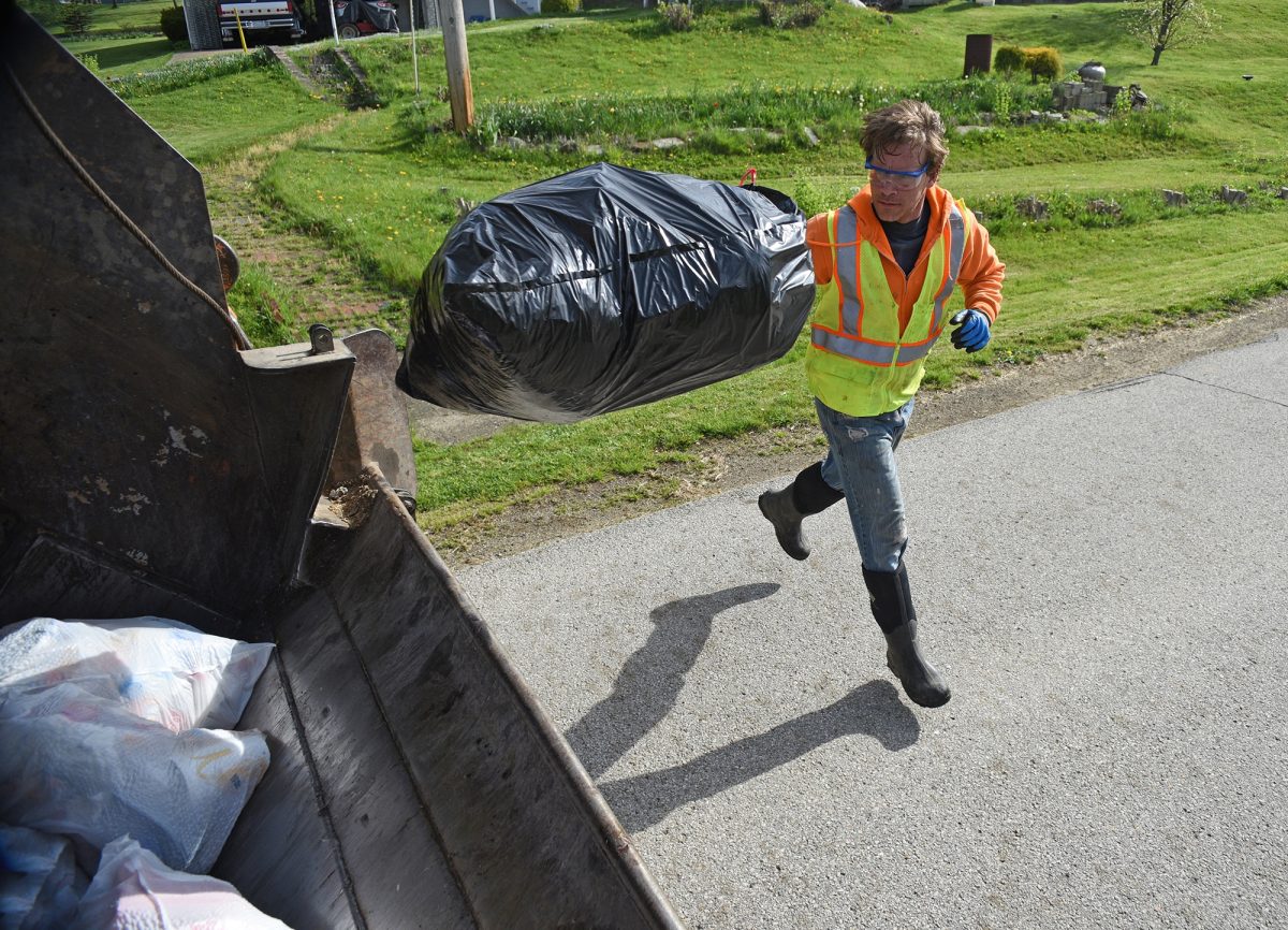 It’s 9:30 a.m., and Josh Ankley, a garbage collector for R&K Disposal in Joffre, has already been on the roads for 4 1/2 hours, loading the back of the garbage truck with hundreds of bags of trash.