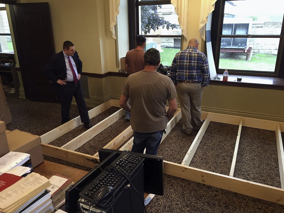 Court Administrator Patrick Grimm and President Judge Katherine B. Emery conferred, choosing the law library as the site of the complex’s newest courtroom, and the county carpenters began work in earnest.