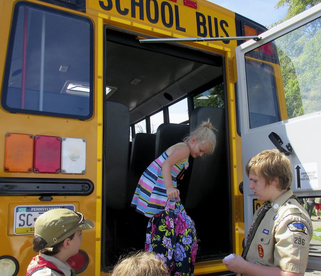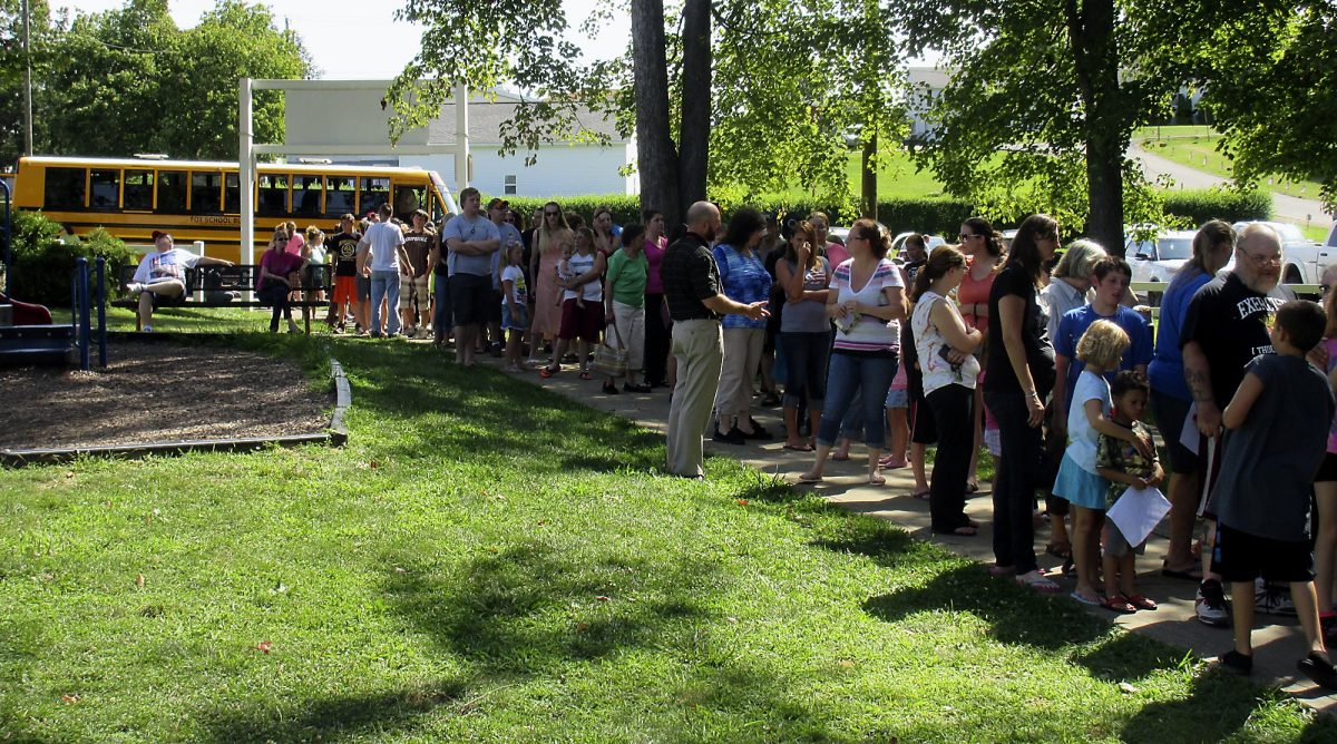 WAYNESBURG – A line of children and families waiting to get new backpacks and school supplies filled the Lions Club Park in Franklin Township Wednesday, much to the delight of “Stuff-The-Bus” organizers.