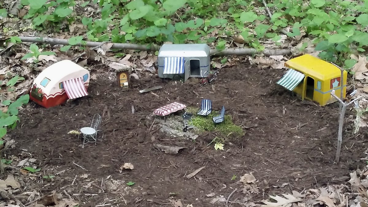 The Robisons’ fairy garden includes several whimsical scenes; among them are a fairy campground, an Old Mother Hubbard scene and a fairy schoolhouse.