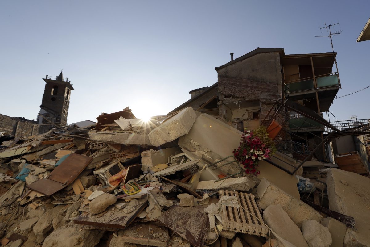 The Italian institute says the earthquake caused the ground below Accumoli to sink 20 centimeters (8 inches), according to satellite images.