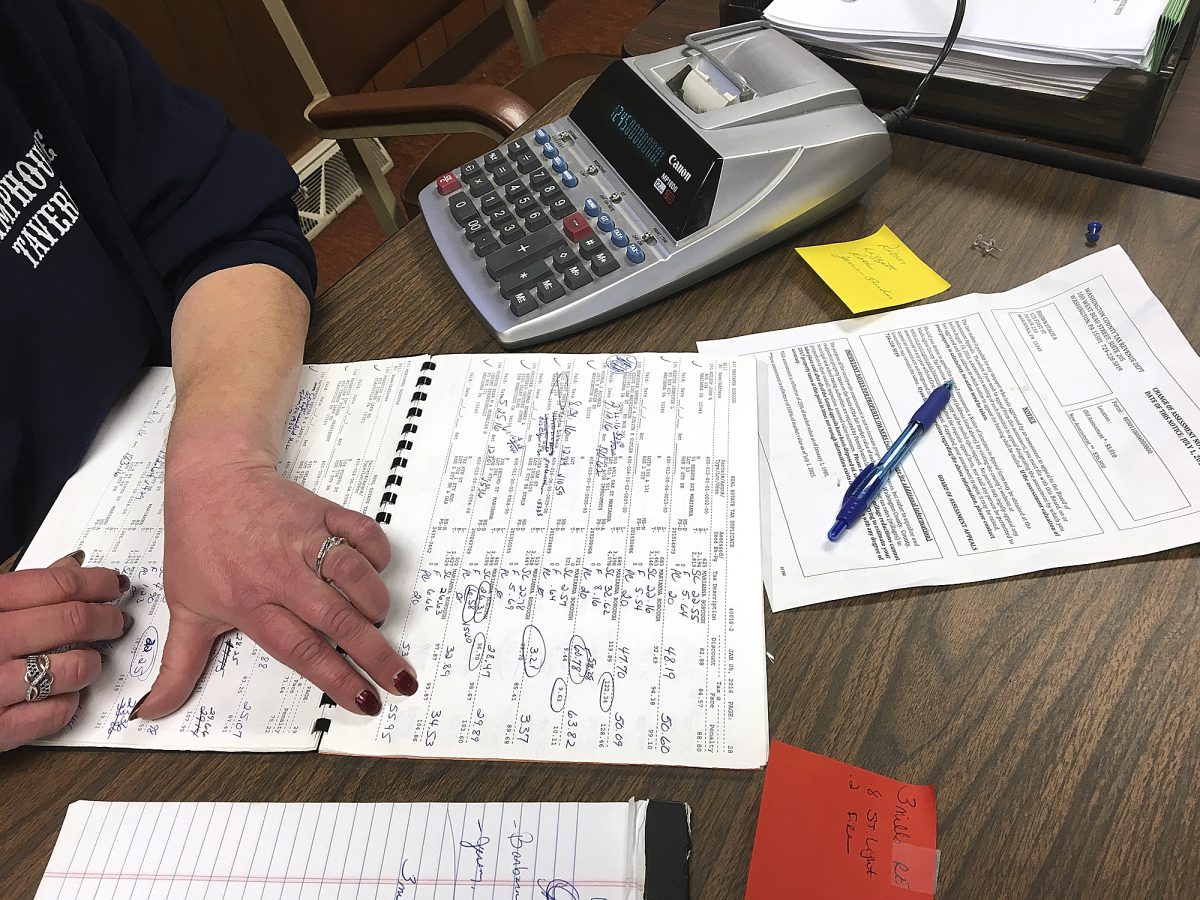 With her spiral-bound document known as a “tax duplicate” and a desktop calculator, Brown punched in number after number as she fielded a barrage of questions.