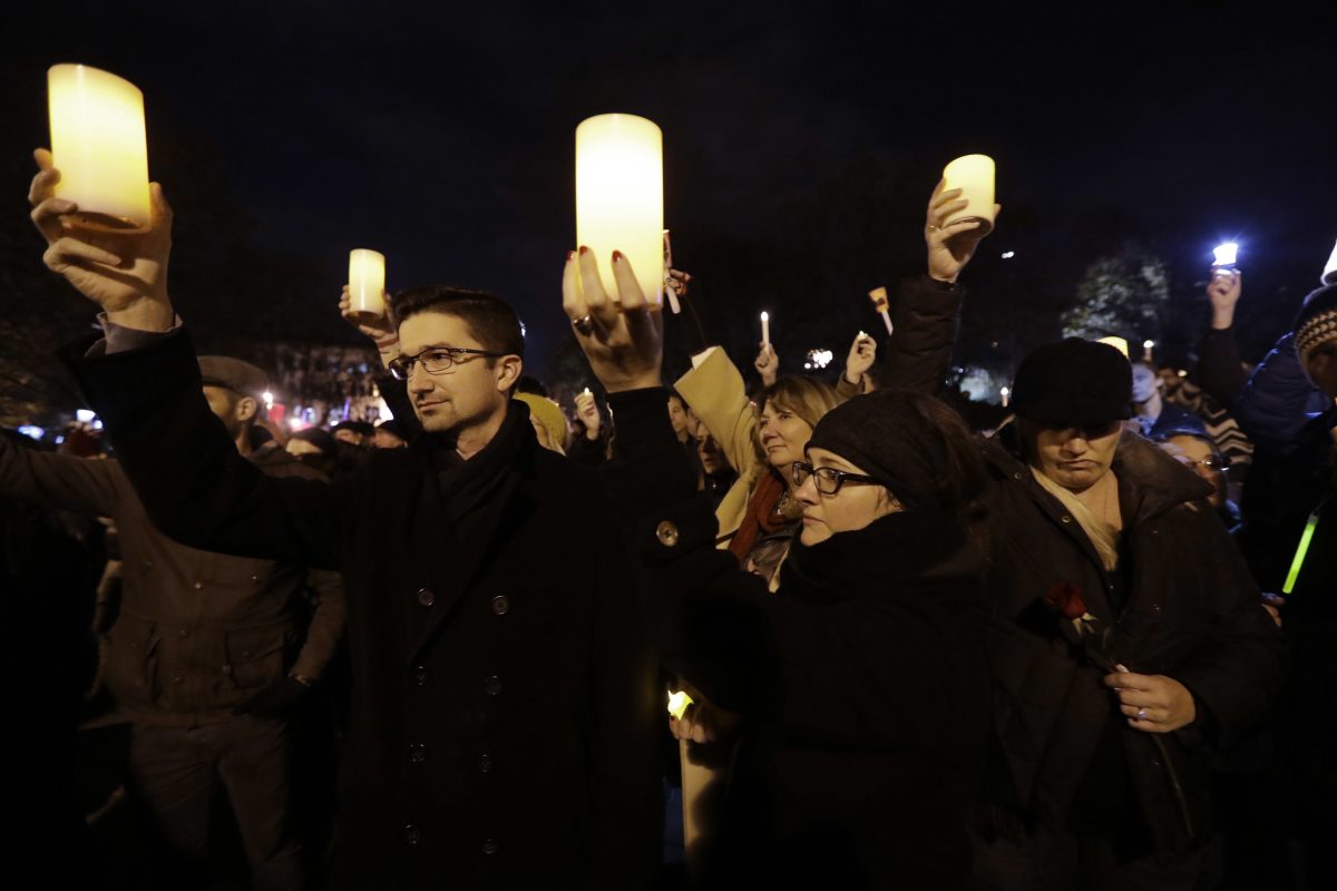 Those in the crowd embraced each other or held up candles as they said aloud the names of people they lost in the blaze.
