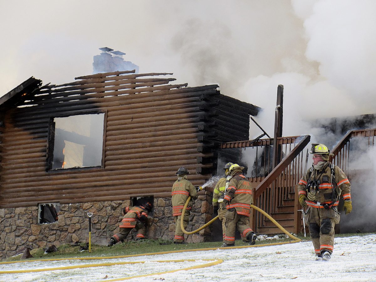 Jefferson fire chief Duane Walters said they were called to the blaze shortly after 10 a.m. and found the log cabin home engulfed in flames. No one was inside at the time, Walters said, but it was not immediately known if any family pets were killed in the fire.