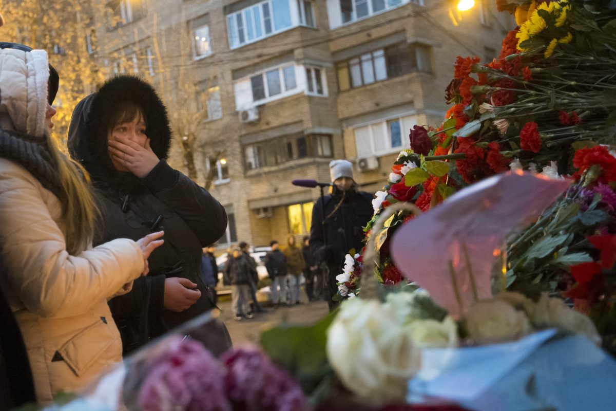 Flags were at half-staff across Russia Monday, nationwide television stations canceled their entertainment programs and the Cabinet began its session with a moment of silence as part of the nationwide mourning. People piled up red and white carnations outside the Moscow office of the Alexandrov Ensemble, popular across the world for its fiery performances.