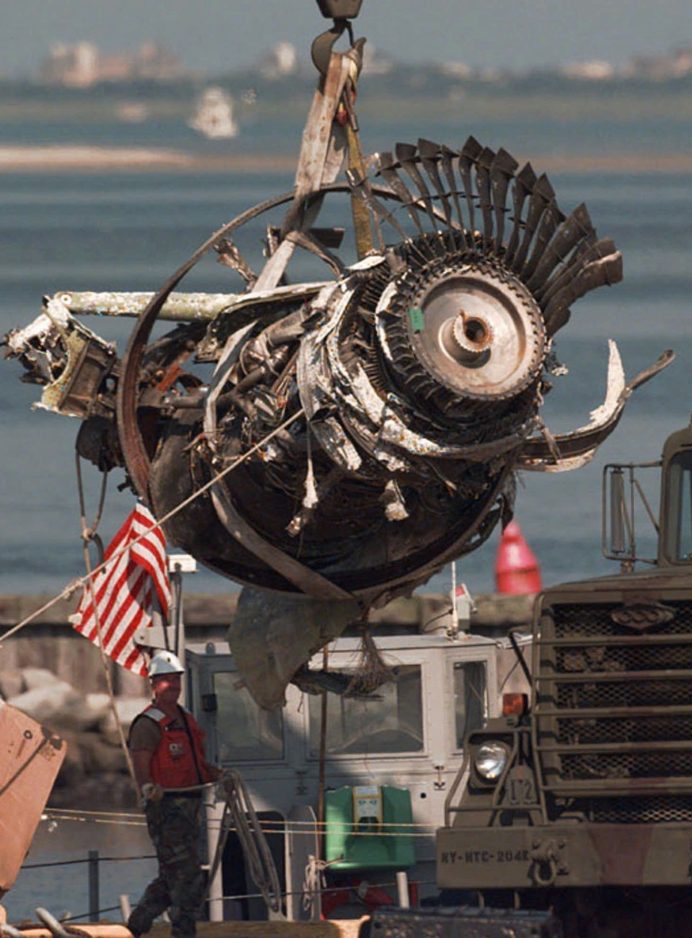 Soon after the Paris-bound flight took off from John F. Kennedy Airport in New York July 17, 1996, the Boeing 747 exploded off Long Island, killing all 230 aboard and leaving a surreal, fiery crash site on the water.
