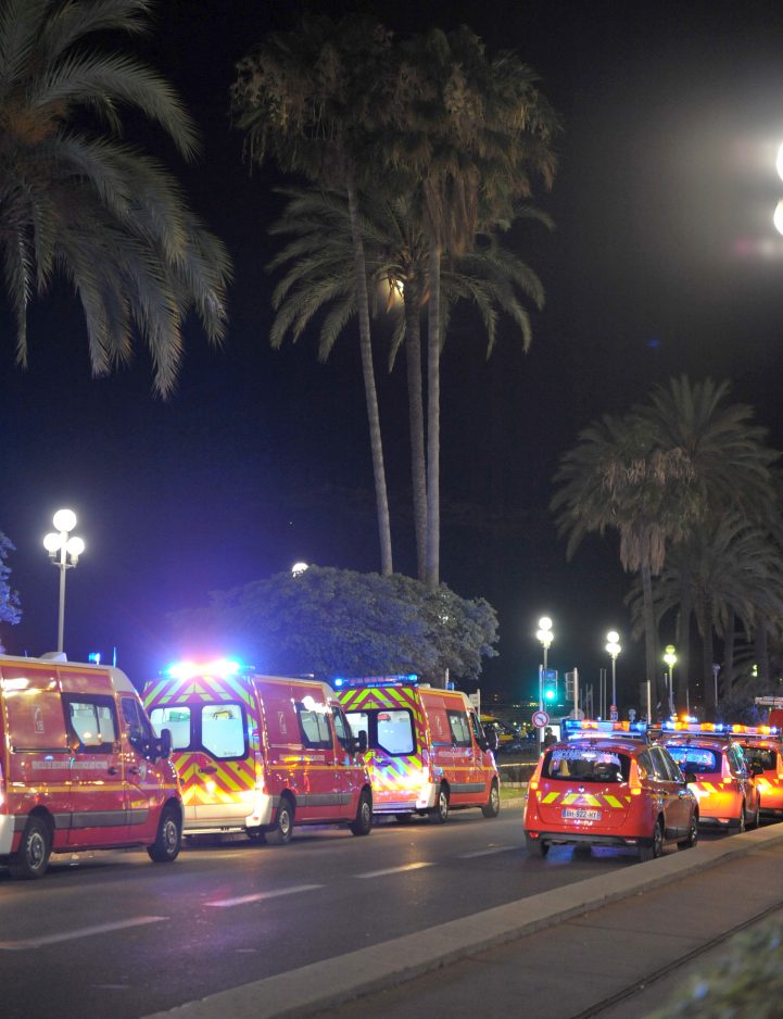 Nice prosecutor Jean-Michel Pretre described a horrific scene, with bodies strewn along the roadway and Sylvie Toffin, a press officer with the local prefecture, said the truck ran over people on a “long trip” down the sidewalk near Nice’s Palais de la Mediterranee, a building that fronts the beach.