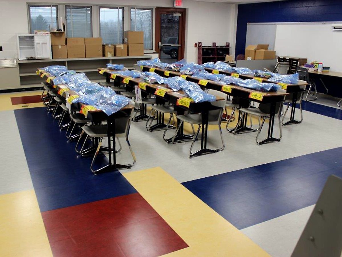 Because the project will be completed on time and is coming in under budget, the district purchased new desks and chairs for students. The building’s stairwells were also painted because the project was on schedule.