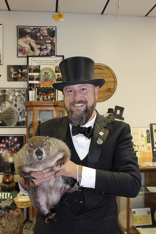 Dereume has been a member of the Punxsutawney Groundhog Circle since 2010 and is the fourth generation of his ancestors to participate in the groundhog tradition since the 1930s. Dereume, along with Punxsutawney Phil and other members of the Groundhog Inner Circle, are expected to attend the Rain Day celebrations around 7 p.m., according to a news release. Dereume’s top hat will be on the line if it rains Friday.