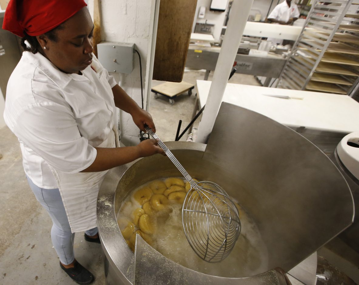 Now, Frost and her mother, Muriel Frost, are in charge. Their workers also hand roll. The holes are small but the bagels are big. The large size is somewhat of an accident after the family found a baker who shared his recipe, Frost said.