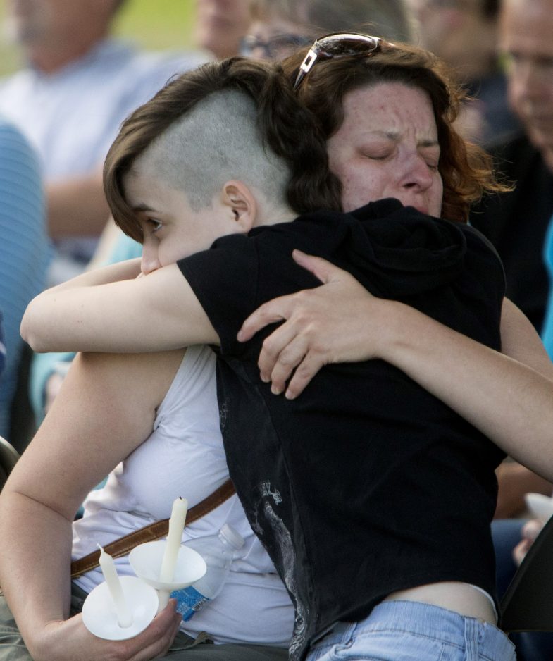 The vigil was held on the lawn of the Dr. Phillips Center, the area’s main performing arts venue. It’s also the location of a makeshift memorial, where people have been leaving flowers, candles and notes for the victims.