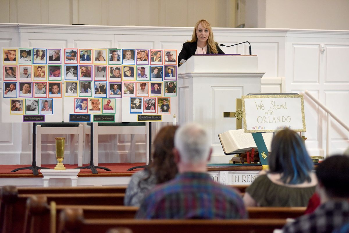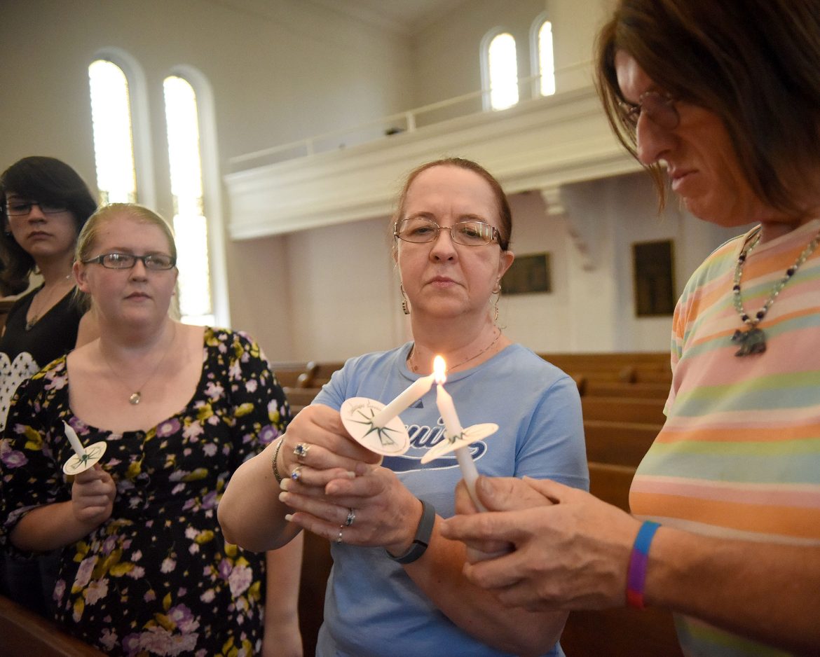 McClarren, a clinical therapist with the Washington office of the Persad center, a human services organization whose mission, according to its website, “is to improve the well-being of the LGBTQ (lesbian, gay, bisexual, transgender, queer and questioning) communities, and the HIV/AIDS communities” in Western Pennsylvania, led the event. She urged the roughly 55 attendees to celebrate the lives of the victims, whose names or photographs were on display as she described the ramifications of the massacre.