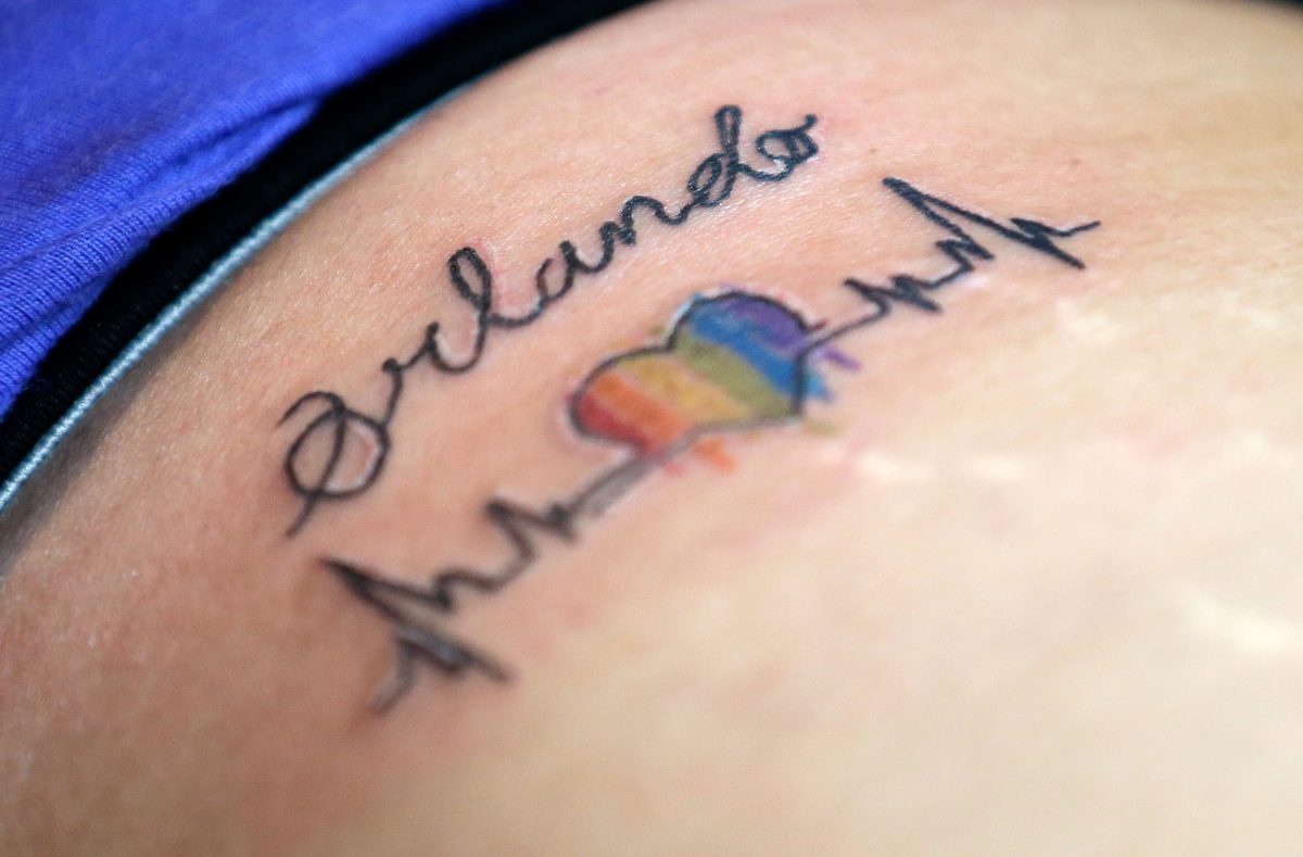 Around the city, people left balloons, flowers, pictures and posters at a makeshift memorial in front of the city’s new performing arts center and at Orlando Regional Medical Center where 49 white crosses were emblazoned with red hearts and the names of the victims.