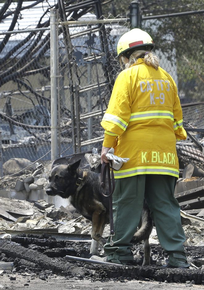 The 58-square-mile fire has claimed at least two lives and officials warned the death toll may rise. Cadaver dogs were being brought in Sunday to search for remains.