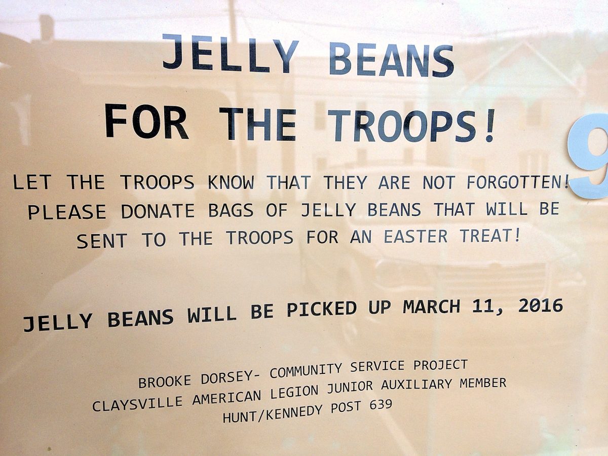 Dorsey starts the “Jelly Beans for the Troops” drive every year five weeks before Easter.