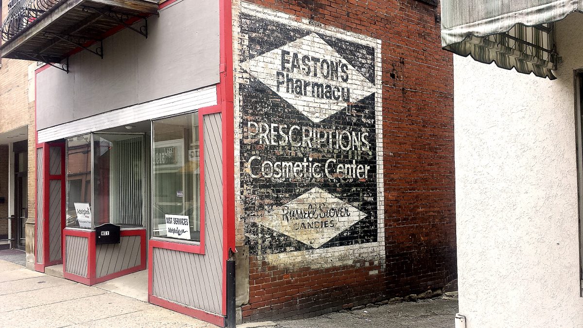 In Donora, a fading sign on the side of a brick buiding promotes Stoney’s beer, which is still being made, and in Washington, a barely visible ad for Ivory soap graces a downtown building.