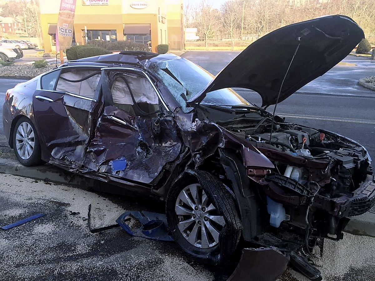 Cheryl Lynn Martorana, 57, was driving east on Morganza Road, crossing the intersection with Weavertown Road in Canonsburg just after 7:30 a.m., when she was hit by a tractor-trailer driven by Abraham Toure, 35, of St. Paul, Minn., who was traveling down Weavertown, said borough police Officer Tom O’Rourke. The impact pushed Martorana’s Honda Accord across Morganza, over a small embankment and through the parking lot of Walgreens. The car came to rest at the curb that separates the lot from Cavasina Drive. O’Rourke said the car was pushed 188 feet from the point of initial impact.