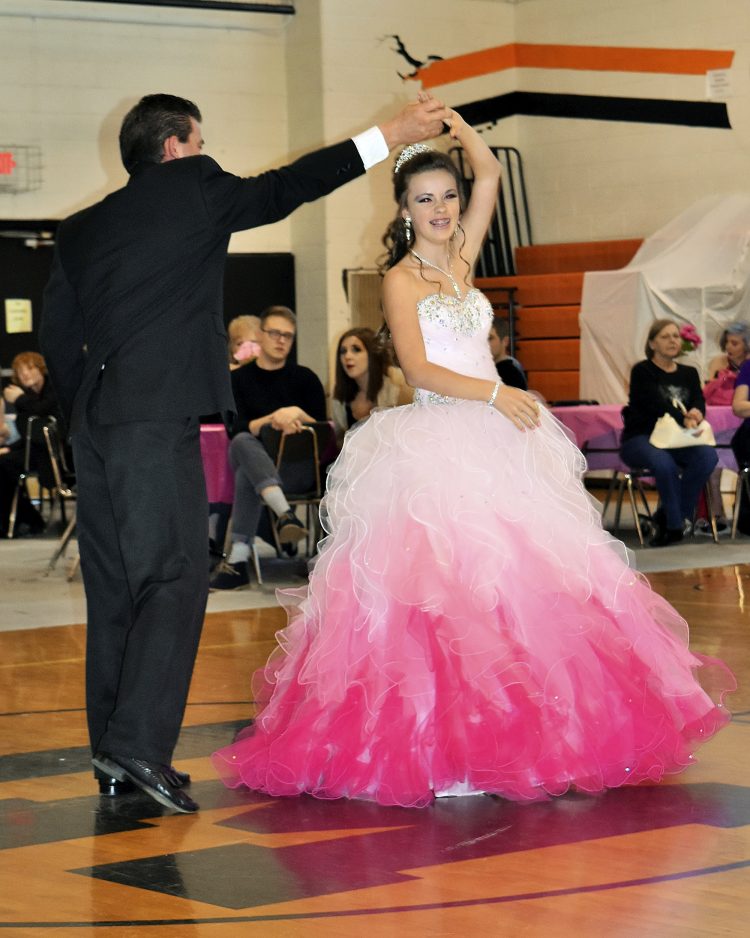 Olivia Ricci, a Jefferson-Morgan High School student, dances with her father, Albert Ricci, during the school’s fourth annual Quinceanera Ball Friday.