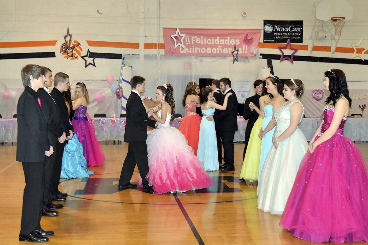 Jefferson-Morgan High School students dance in the gym during the school’s fourth annual Quinceanera Ball Friday. The Quinceanera, which is sponsored by the school’s Foreign Language Club, is a replication of a Hispanic culture dance to celebrate a girl’s 15th birthday.