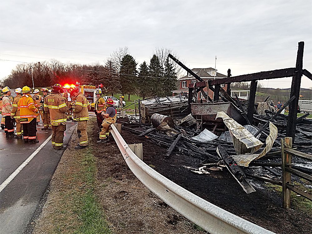 The barn, which contained some farming equipment, was fully engulfed in flames when firefighters arrived at the farm, Curcio said.