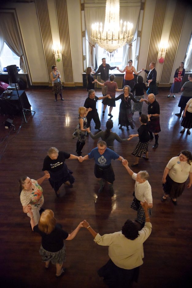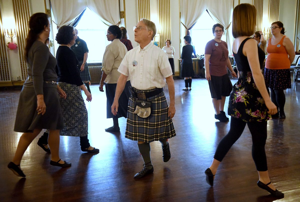 “I always like the music,” Lindsey said after a round of bowing and curtseying and five-couple square sets. “It’s really been my only form of exercise. I think it appeals to the mathematical side of my brain.” Lindsey was one of about 30 people who ascended to the top of Mount Washington recently for a meeting of the Pittsburgh Scottish Country Dance Society. Setting up in the banquet hall of Grace Episcopal Church, a selection of newcomers and seasoned veterans like Lindsey, who first discovered Scottish country dancing in 1997 when she was an undergraduate, went through their paces.