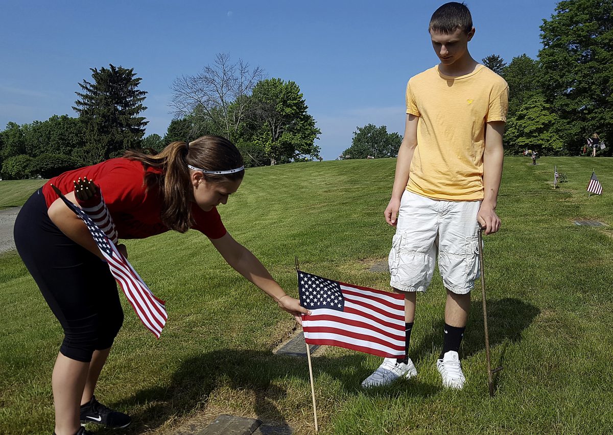 JEFFERSON – A simple gesture of placing American flags beside the headstones of every veteran buried at Greene County Memorial Park had added meaning to Jefferson-Morgan students who joined area veterans to decorate the gravesites before Memorial Day.
