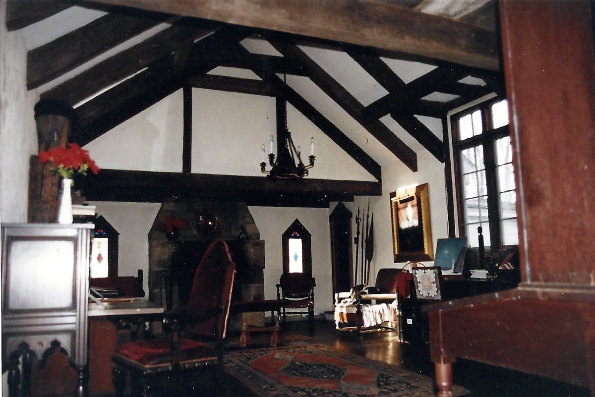 Sadly and shamefully, Moon Lorn today is abandoned and nearly a ruin. It has been ransacked by vandals, its plumbing and wiring stripped by copper thieves, its walls defaced by graffiti. Its doors and locks have been broken, its furniture and even a stained-glass window stolen. The floors are littered with beer bottles and trash.