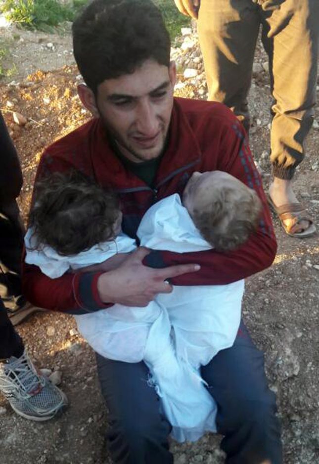 Abdel Hameed Alyousef lost his two children, his wife and other relatives in the suspected chemical attack Tuesday in the northern Syrian town of Khan Sheikhoun that killed at least 72 people. In footage shared with the Associated Press, Alyousef sits in the front seat of a van with the twins, his eyes red as he asks his cousin Alaa to video his farewell to them.